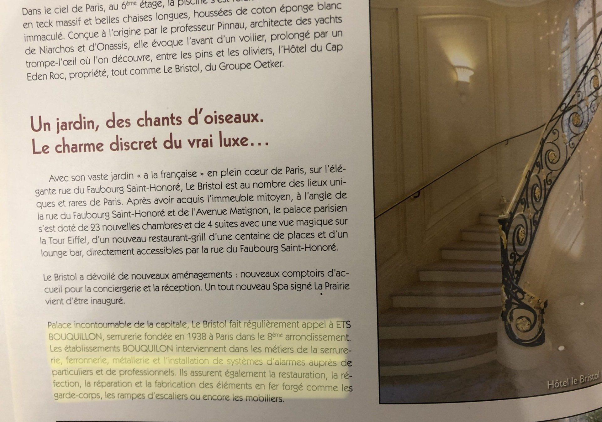 Notre client l’hôtel Bristol parle de nous dans un article qui lui est consacré, visualisez les photos ci-dessous !