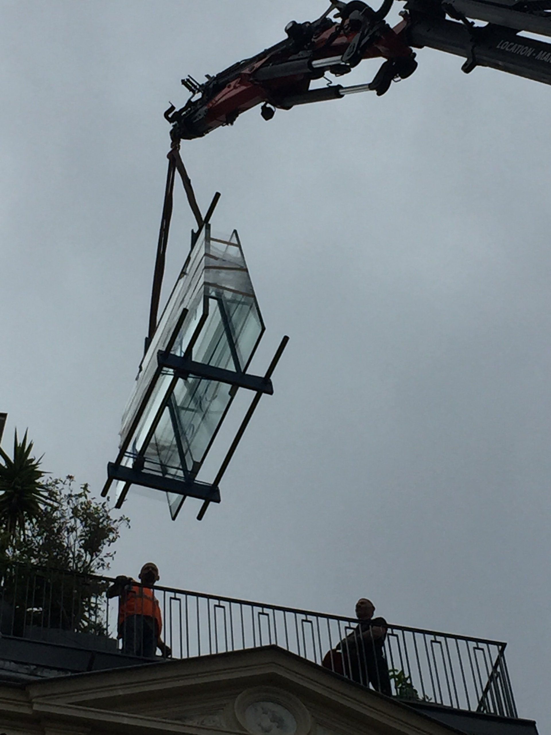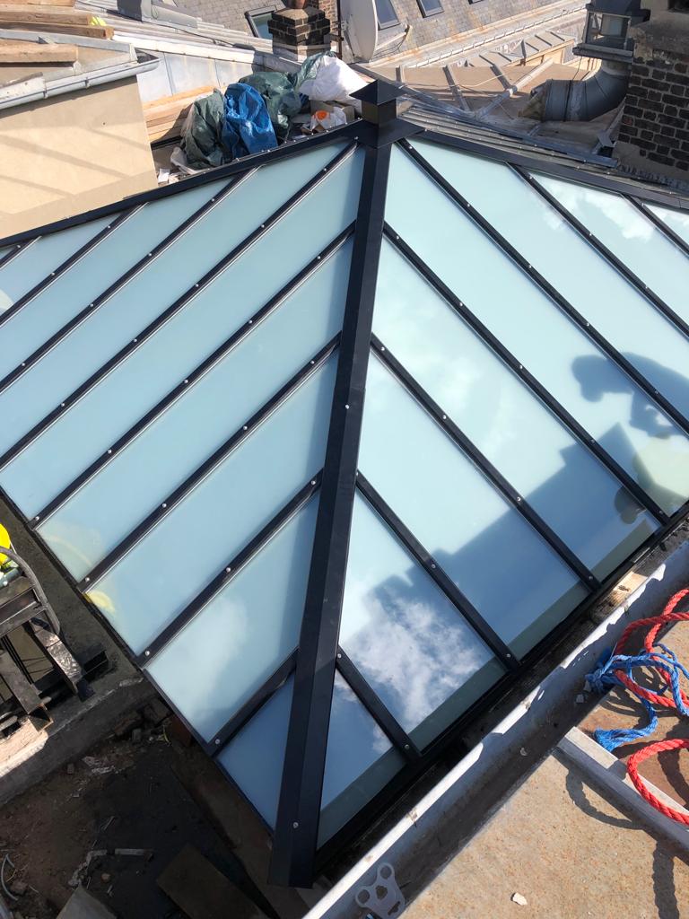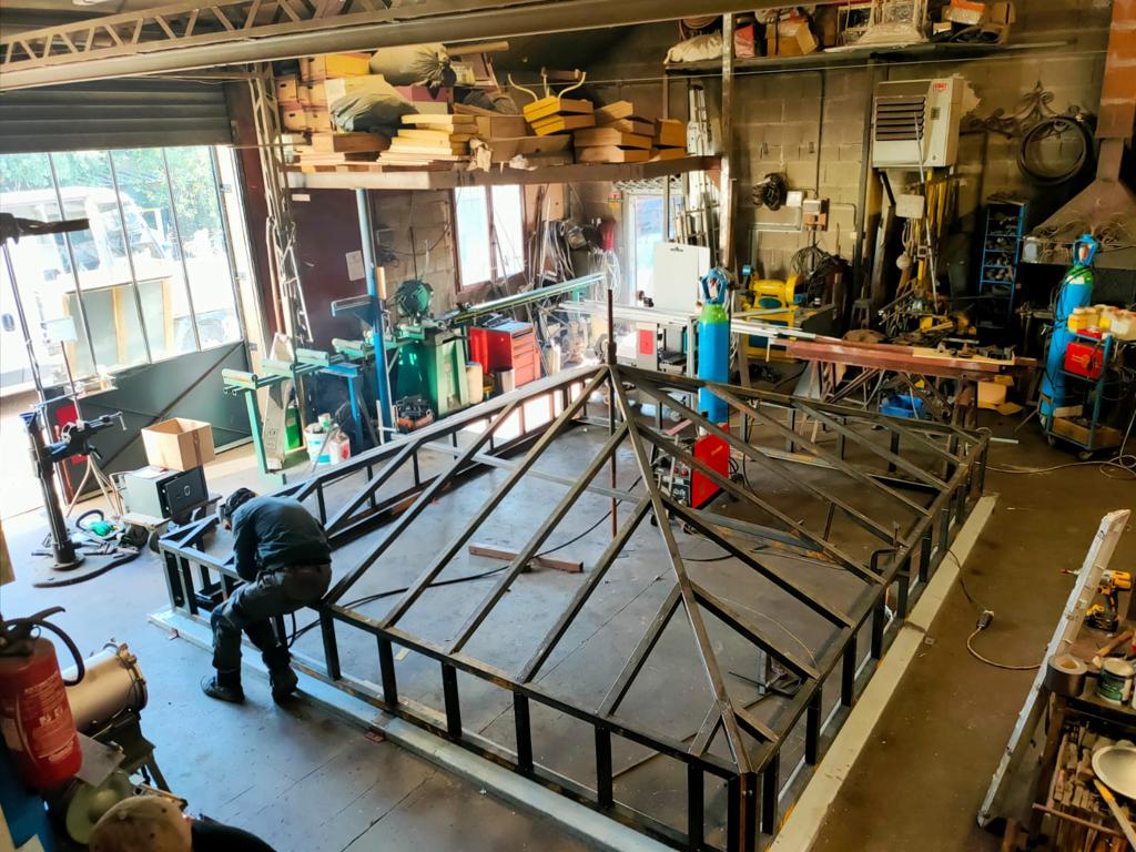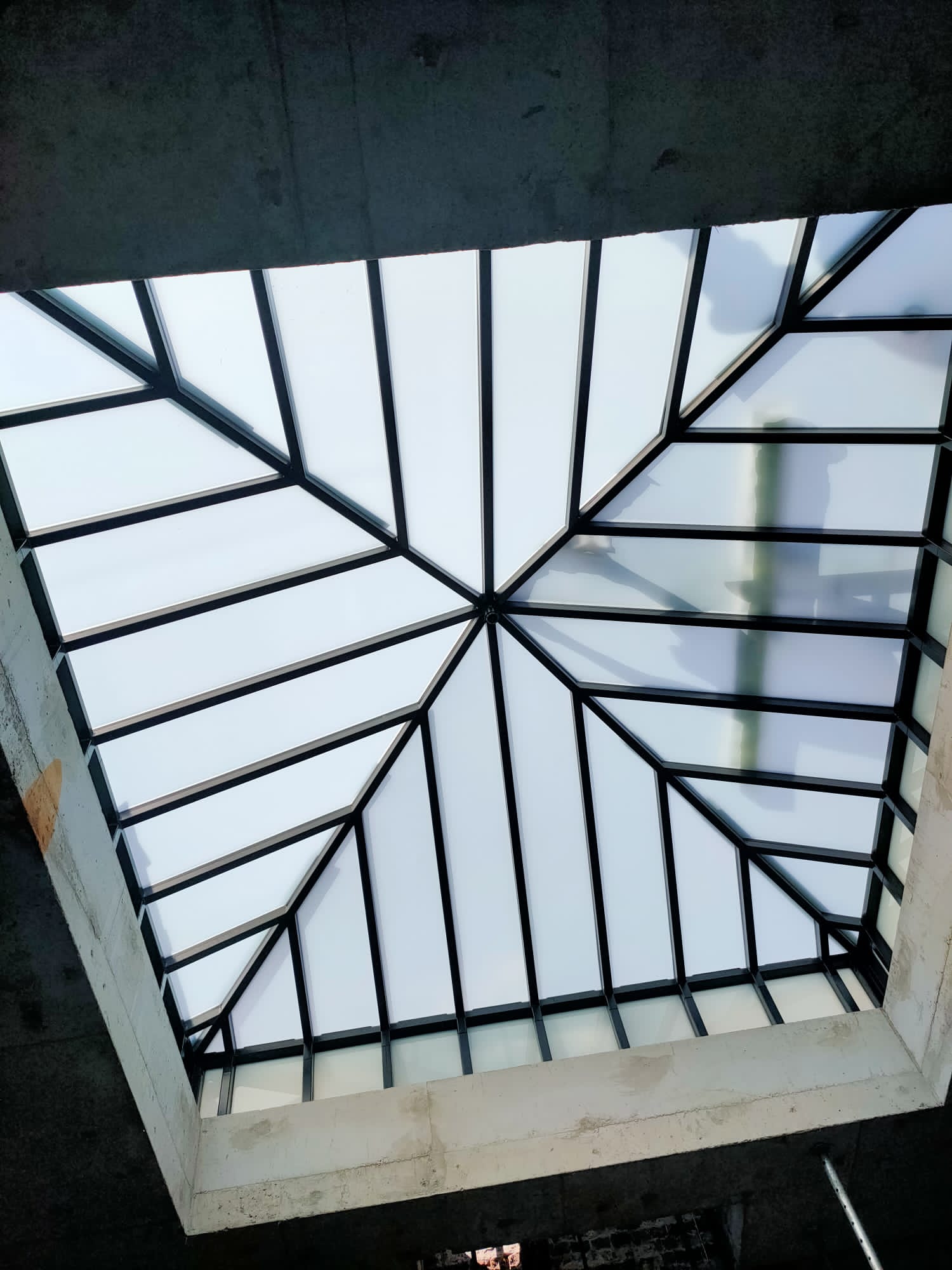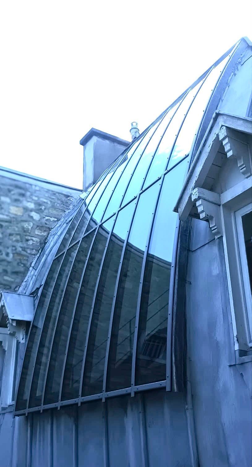 Création d'une verrière bombée avec double vitrage bombé et profils RP Technik. Dim. 6x4m