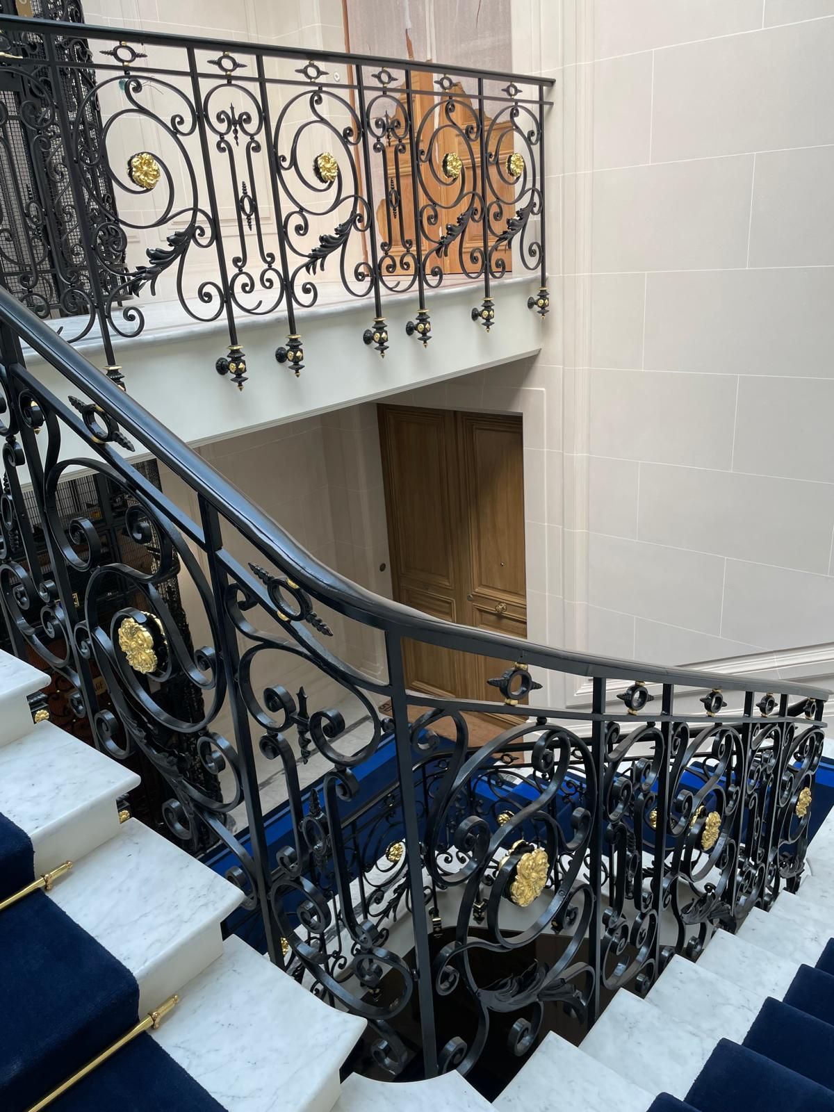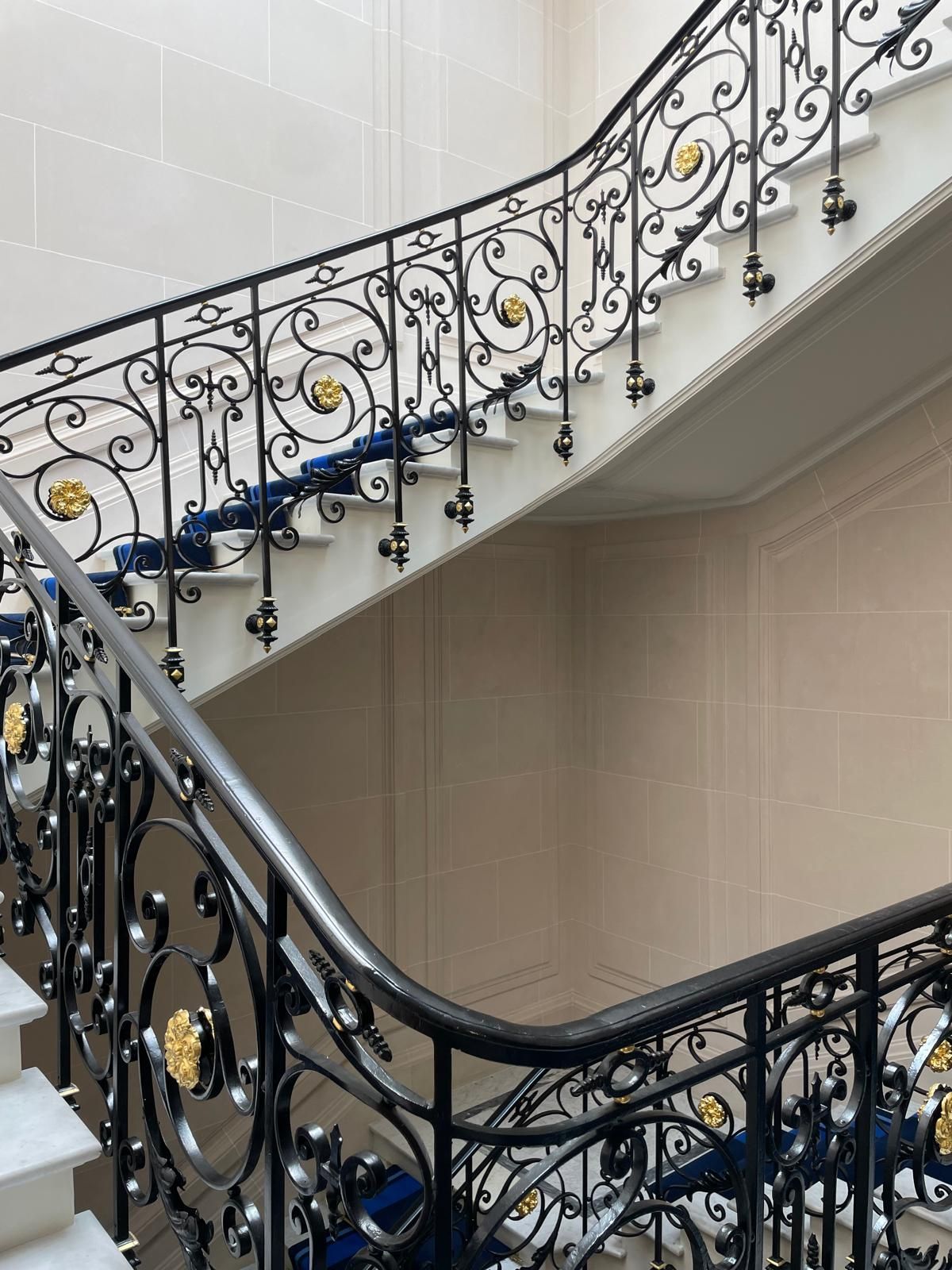 Fabrication et pose d'une rampe Art Déco sur escalier hélicoïdal